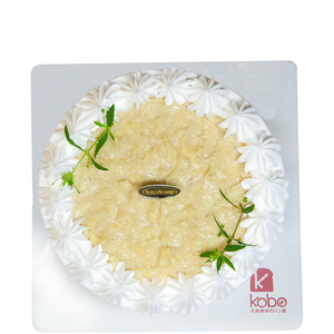 Available on 6" only This cake represents the best of both worlds. Thin layers of crepes filled with 100% fresh durian flesh and fresh cream.