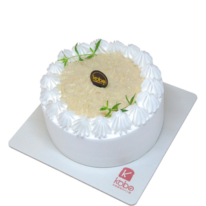 Finding a way to a durian lover's heart? Get this cake for the special one, Crowned with fresh cream with studded roasted flake almonds and filled with durian puree on centre of the cake.