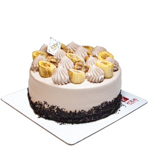 Treat yourself to the Banana Indulgent cake, featuring layers of decadent chocolate chiffon intertwined with luscious banana fruit filling and velvety chocolate cream, promising a harmonious blend of rich flavors and creamy textures in every indulgent slice.