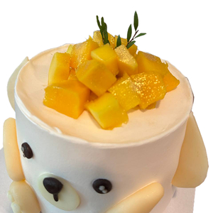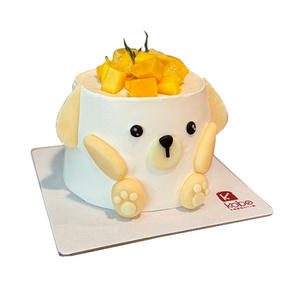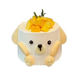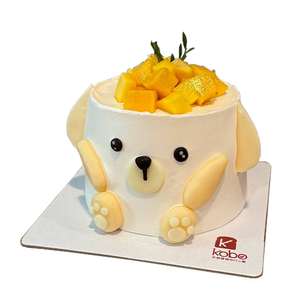 Adorably designed like a cuddly puppy, complete with floppy ears and paw details, and topped with juicy mango cubes for a fruity twist.